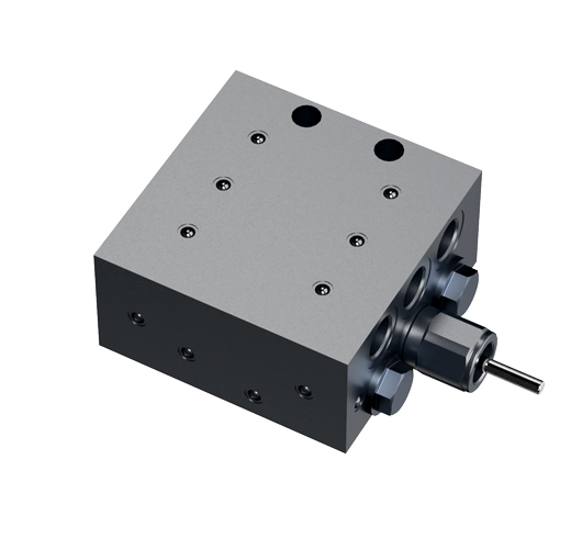يمكن تحقيق المراقبة المرئية أو الإلكترونية ببساطة عن طريق إزالة القابس وتثبيت جهاز إضافي مرئي أو إلكتروني كما هو موضح أدناه. تعمل البكرات في صمام القياس التدريجي بالتسلسل مقسمة بالتساوي عبر المنافذ ، ويتم ضخ الشحوم في مدخل كتلة القياس.